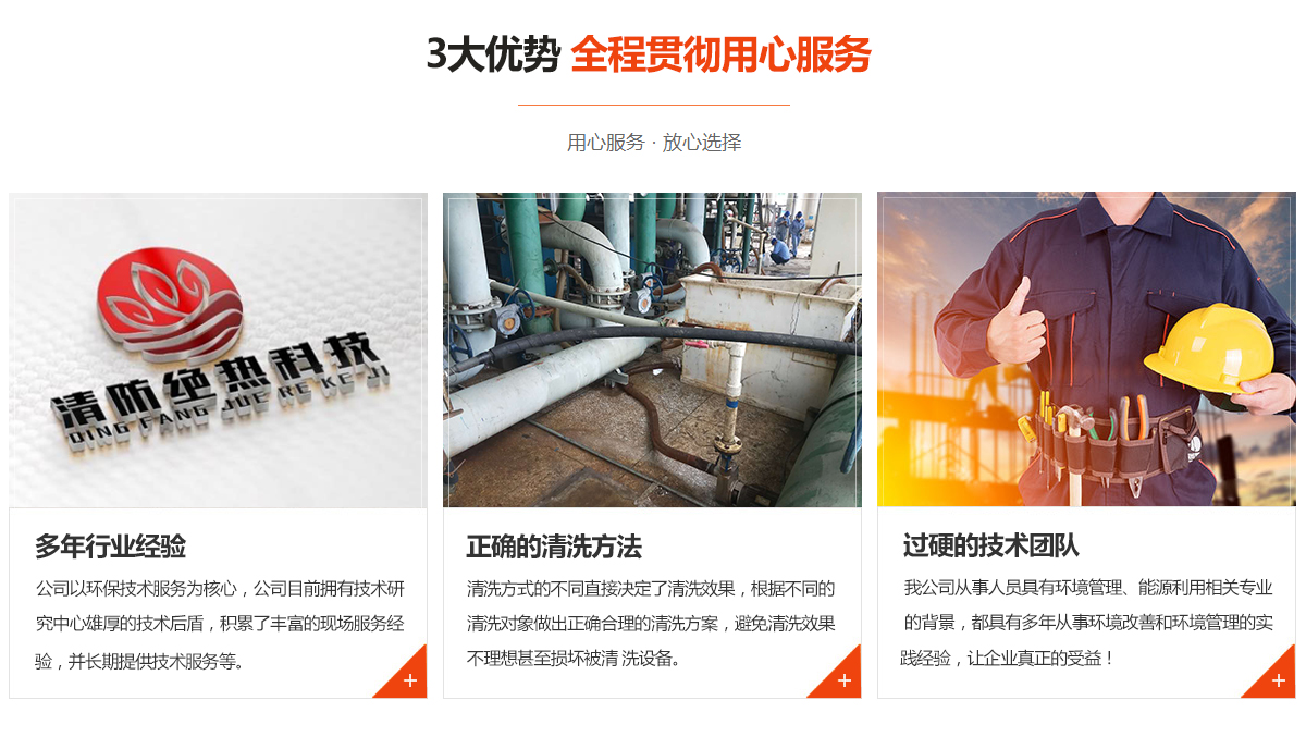 專業(yè)從事化學(xué)清洗、物理清洗各種型號換熱器、鍋爐、管線、維修,污水處理設(shè)施的修復(fù)、管理、經(jīng)營、技術(shù)咨詢及配套服務(wù);環(huán)境技術(shù)開發(fā);防腐、保溫等領(lǐng)域的工程施工、技術(shù)咨詢等;目前主要合作單位以煤化工、發(fā)電廠、治煉廠為主;公司目前擁有技術(shù)研究中心雄厚的技術(shù)后盾,積累了豐富的現(xiàn)場服務(wù)經(jīng)驗,并長期提供技術(shù)服務(wù)等。